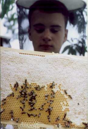 Stolzer Imker mit fast schleuderreifer Wabe |